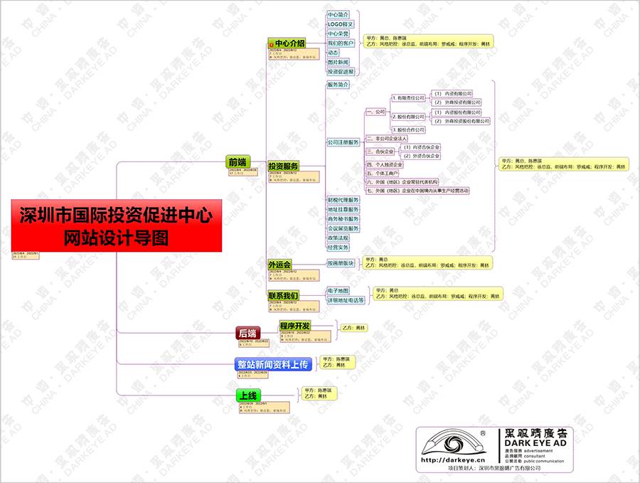 這次官網(wǎng)改版,深圳市國際投資促進(jìn)中心的黃總對(duì)黑眼睛廣告給予了很高的期望,黑眼睛廣告很快就完成了整個(gè)網(wǎng)站《項(xiàng)目完成甘特圖》和《網(wǎng)站建設(shè)拓?fù)鋱D》并抽調(diào)設(shè)計(jì)能力最強(qiáng)的網(wǎng)站前端設(shè)計(jì)師、架構(gòu)師、程序開發(fā)人員,組成項(xiàng)目組開始項(xiàng)目設(shè)計(jì)。