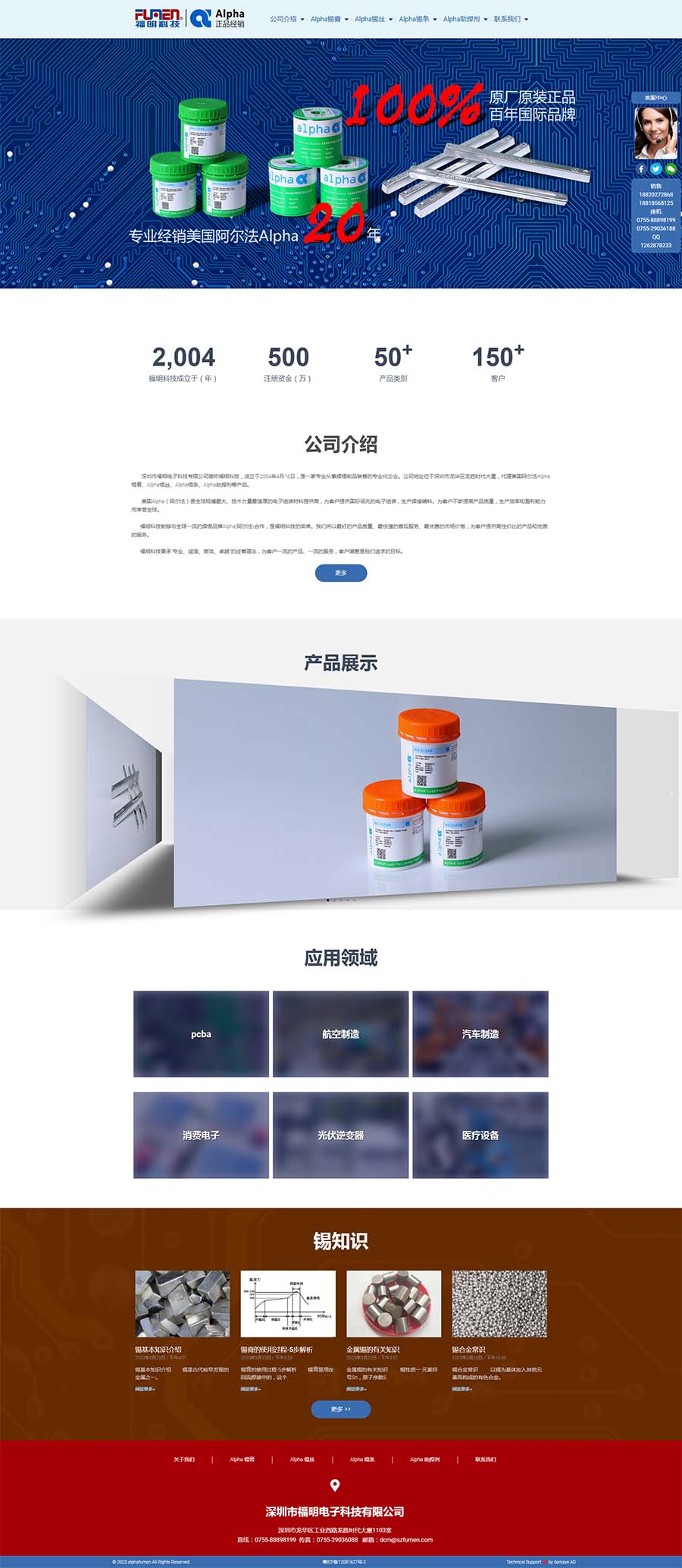 專業(yè)無(wú)需多言,作品自會(huì)發(fā)聲深圳市福明電子科技有限公司簡(jiǎn)稱福明科技,成立于2004年4月16日,是一家專業(yè)從事焊錫制品銷(xiāo)售的專業(yè)化企業(yè)。公司地址位于深圳市龍華區(qū)龍勝時(shí)代大廈,代理美國(guó)阿爾法Alpha錫膏、Alpha錫絲、Alpha錫條、Alpha助焊劑等產(chǎn)品。